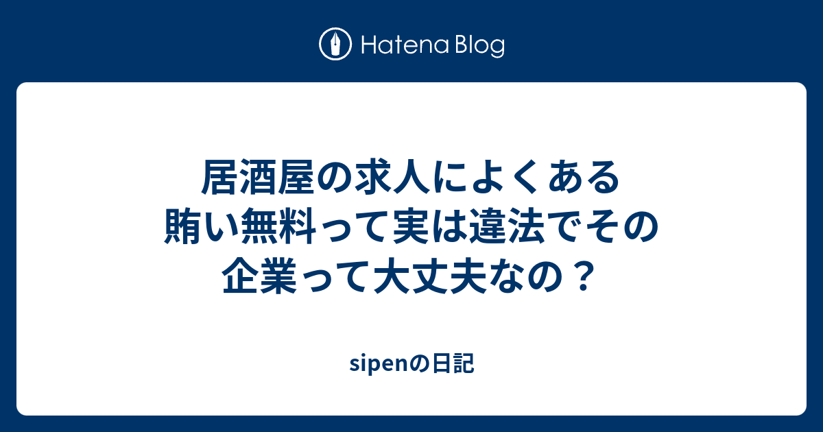 居酒屋の求人によくある賄い無料って実は違法でその企業って大丈夫なの Sipenの日記