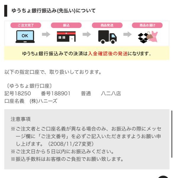 ハニーズの通販について質問です ゆうちょ銀行での支払いをし Yahoo 知恵袋